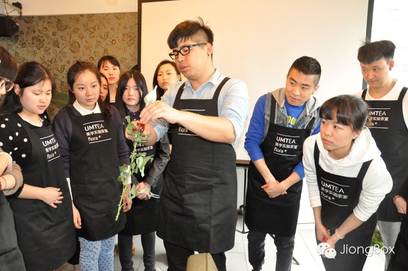 为了使初学者更深刻地了解插花这门生活艺术,Jason老师在正式操作前,先为大家细心讲解了关于色彩的基本原理,花艺不同用途的搭配,工具的使用等理论知识。