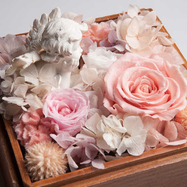 花材解析:礼盒选用世界最高水准的永生花材,礼盒主色调为爱情的璀璨粉色+天空的纯净白色。